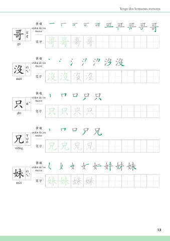 Tengo dos hermanos menores അන orden de los ࡩ 歌 trazos gē ᄳο ࡩ ࡩ 哥 哥 അන orden de los Ӛ 沒 trazos méi ᄳο Ӛ Ӛ 沒 沒 അන orden de los ̥ 只 trazos zhǐ ᄳο ̥ ̥ 只 只 അන orden de los ̃ 兄 trazos xiōng ᄳο ̃ ̃ 兄 兄 അන orden de los ֊ 妹 trazos mèi ᄳο ֊ ֊ 妹 妹 13
