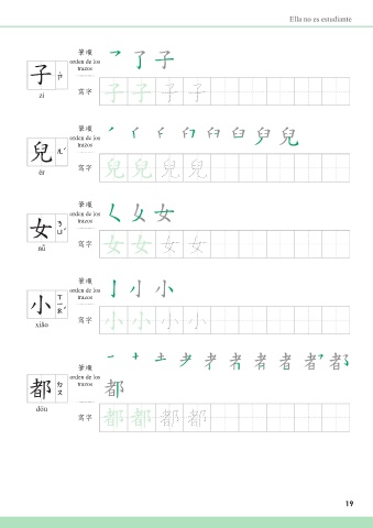 Ella no es estudiante അන orden de los ɿ 子 trazos zi ᄳο ɿ ɿ 子 子 അන orden de los Յ 而 trazos ér ᄳο Յ Յ 兒 兒 അන orden de los ɾ 女 trazos nǚ ᄳο ɾ ɾ 女 女 അන orden de los ʃ 小 trazos xiǎo ᄳο ʃ ʃ 小 小 അන orden de los ே 都 trazos dōu ᄳο ே ே 都 都 19