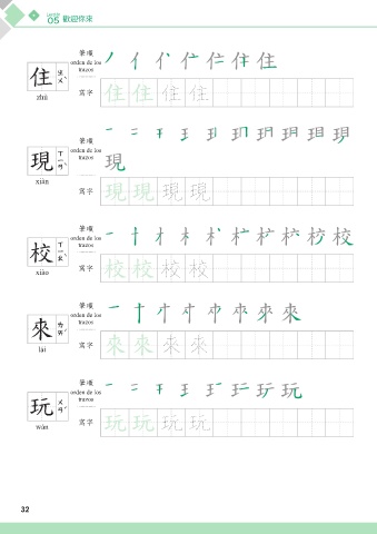 Lección 05 歡迎你來 അන orden de los И 住 trazos zhù ᄳο И И 住 住 അන orden de los ତ 現 trazos xiàn ᄳο ତ ତ 現 現 അන orden de los ࣧ 校 trazos xiào ᄳο ࣧ ࣧ 校 校 അන orden de los Ը 來 trazos lái ᄳο Ը Ը 來 來 അන orden de los ِ 玩 trazos wán ᄳο ِ ِ 玩 玩 32