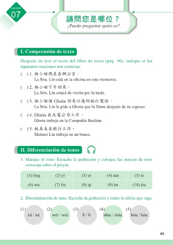 2. Discriminación de tono: Escuche la grabación y rodee la sílaba que oiga.