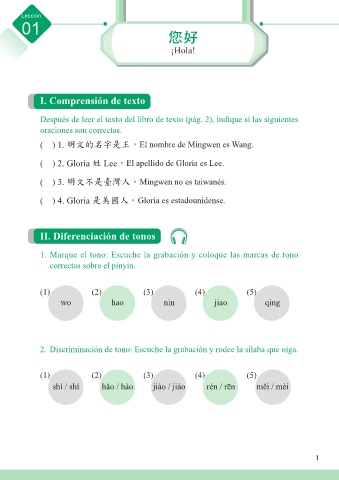 Page 5 - 來學華語西班牙文版作業本第一冊