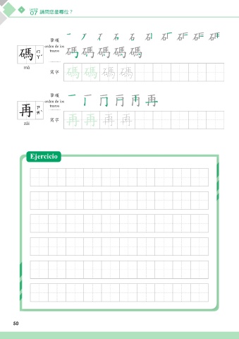 Lección 07 請問您是哪位? അන orden de los ᇁ 碼 trazos mǎ ᄳο ᇁ ᇁ 碼 碼 അන orden de los Ύ 在 trazos ᄳο Ύ Ύ 再 再 zài Ejercicio 50 50