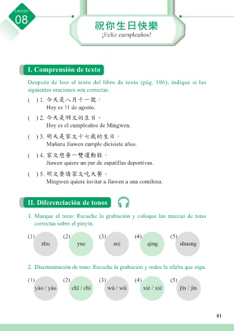 2. Discriminación de tono: Escuche la grabación y rodee la sílaba que oiga.
