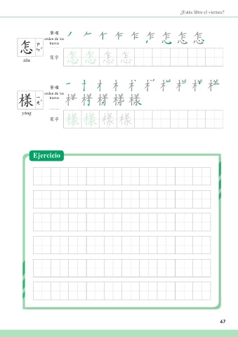 ¿Estás libre el viernes? അන orden de los ܣ 怎 trazos zěn ᄳο ܣ ܣ 怎 怎 അන orden de los ᅵ 樣 trazos yàng ᄳο ᅵ ᅵ 樣 樣 Ejercicio 67