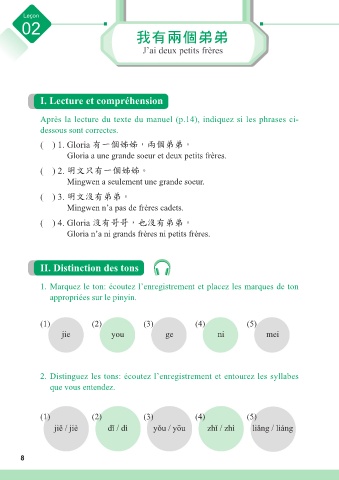 2. Distinguez les tons: écoutez l’enregistrement et entourez les syllabes