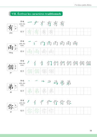 VII. Écrivez les caractères traditionnels