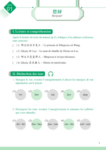 2. Distinguez les tons: écoutez l’enregistrement et entourez les syllabes