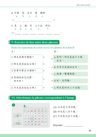 Reliez les expressions de la liste A avec les réponses de la liste B.