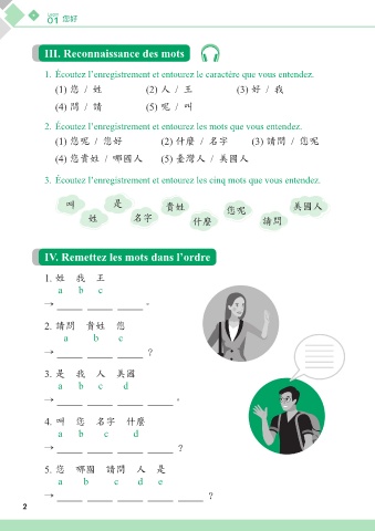 1. Écoutez l’enregistrement et entourez le caractère que vous entendez.