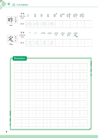 Leçon 01 今天天氣很好 അන ordre des 昨 traits ᄳο 昨 昨 zuó അන ordre des ֛ 定 traits dìng ᄳο ֛ ֛ 定 定 Exercice 8 8