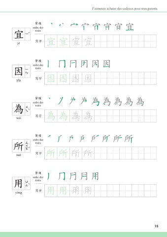 J’aimerais acheter des cadeaux pour mes parents അන ordre des ֝ 宜 traits ᄳο ֝ ֝ 宜 宜 yí അන ordre des Ϊ 因 traits yīn ᄳο Ϊ Ϊ 因 因 അන ordre des މ 位 traits wèi ᄳο މ މ 為 為 അන ordre des ה 所 traits suǒ ᄳο ה ה 所 所 അන ordre des ͜ 用 traits yòng ᄳο ͜ ͜ 用 用 15