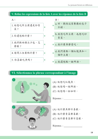 V. Reliez les expressions de la liste A avec les réponses de la liste B