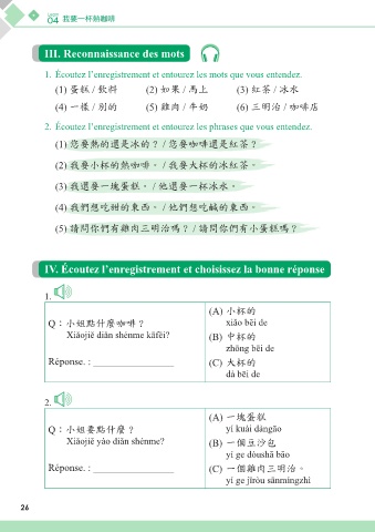 IV. Écoutez l’enregistrement et choisissez la bonne réponse