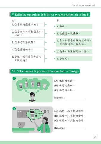 V. Reliez les expressions de la liste A avec les réponses de la liste B