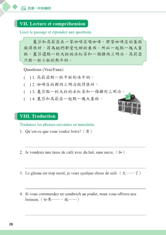 2. Je voudrais une tasse de café avec du lait, sans sucre.̋