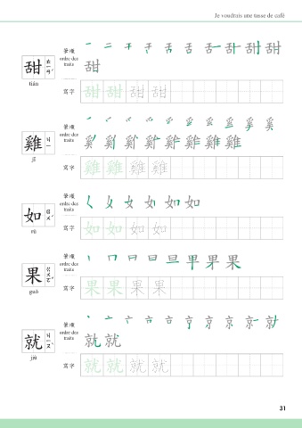 Je voudrais une tasse de café അන ordre des 田 traits tián ᄳο 甜 甜 അන ordre des ᕒ 機 traits jī ᄳο ᕒ ᕒ 雞 雞 അන ordre des ν 如 traits rú ᄳο ν ν 如 如 അන ordre des ؈ 果 traits guǒ ᄳο ؈ ؈ 果 果 അන ordre des ఱ 就 traits jiù ᄳο ఱ ఱ 就 就 31