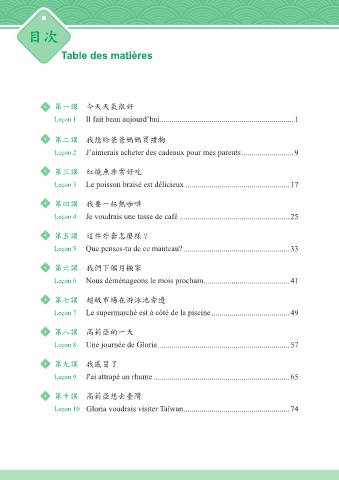 Leçon 10 Gloria voudrais visiter Taïwan .....................................................74