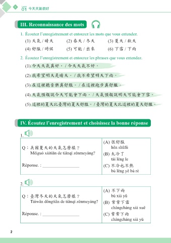IV. Écoutez l’enregistrement et choisissez la bonne réponse
