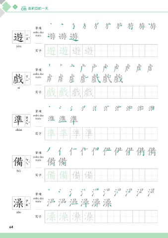 Leçon 08 高莉亞的一天 അන ordre des ༷ 由 traits yóu ᄳο ༷ ༷ 遊 遊 അන Ꮥ 戲 ordre des traits xì ᄳο Ꮥ Ꮥ 戲 戲 അන ordre des 準 traits zhǔn ᄳο 準 準 അන ordre des ௪ 備 traits bèi ᄳο ௪ ௪ 備 備 അන ordre des ዡ 澡 traits zǎo ᄳο ዡ ዡ 澡 澡 64 64