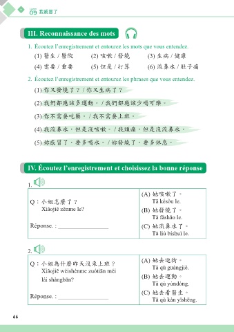 IV. Écoutez l’enregistrement et choisissez la bonne réponse